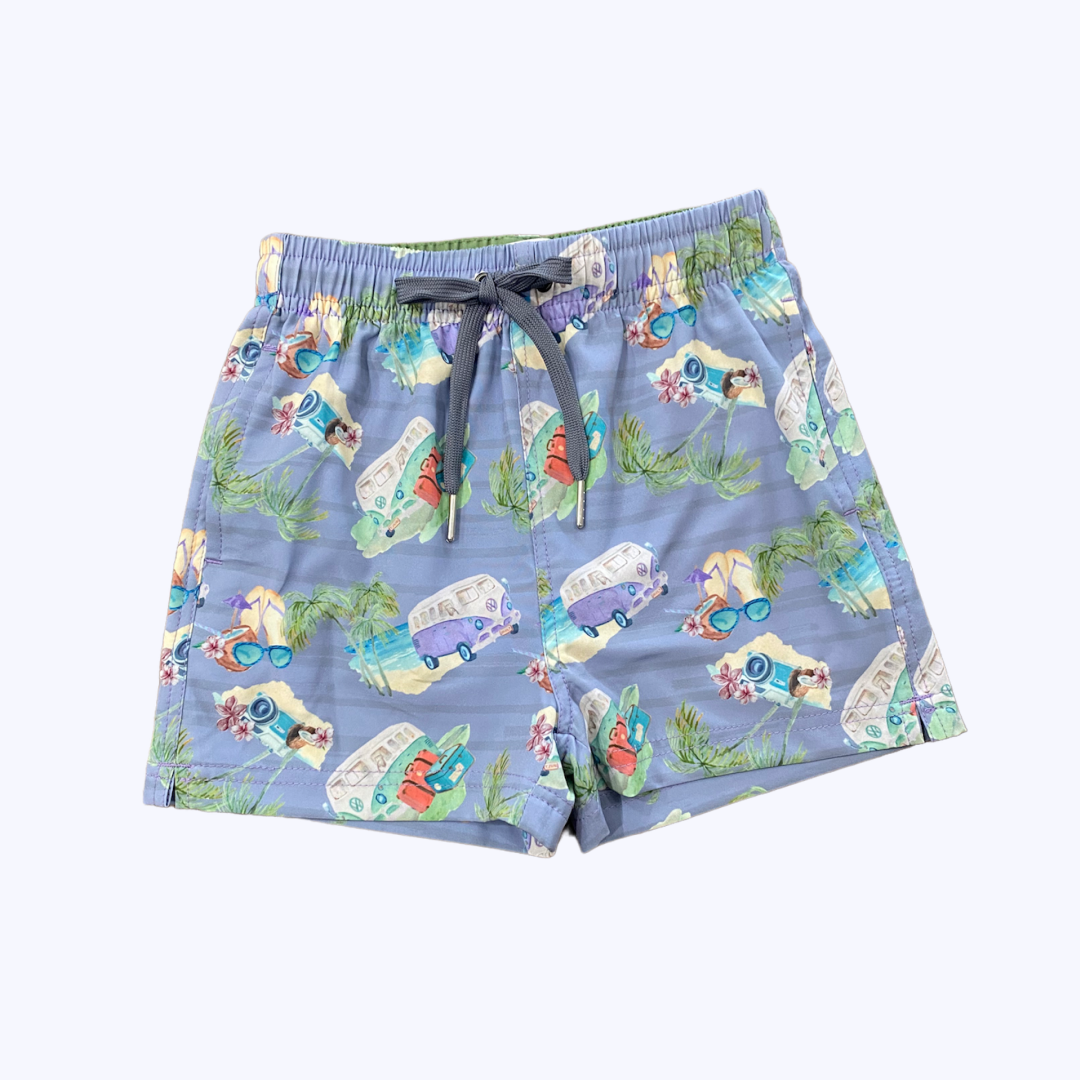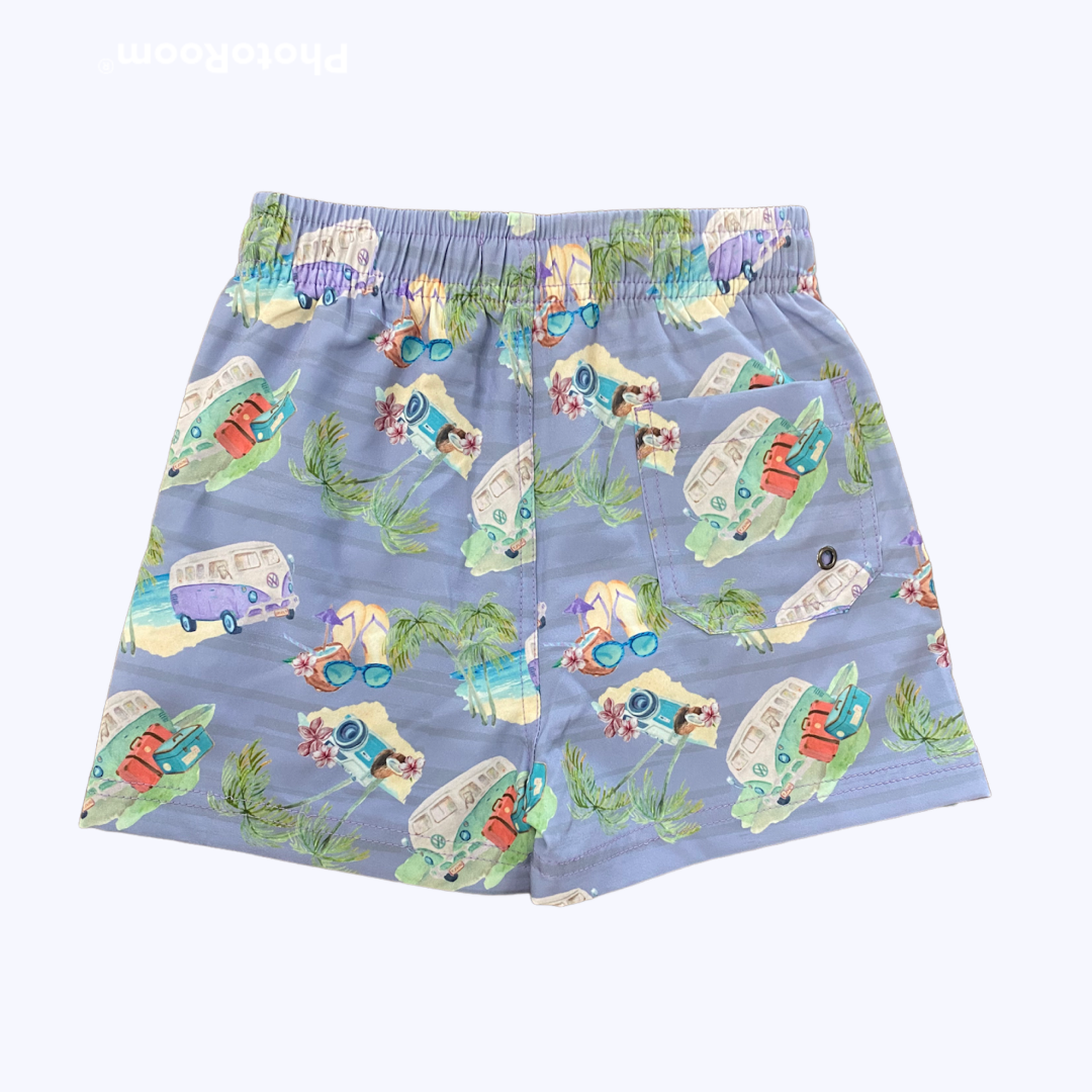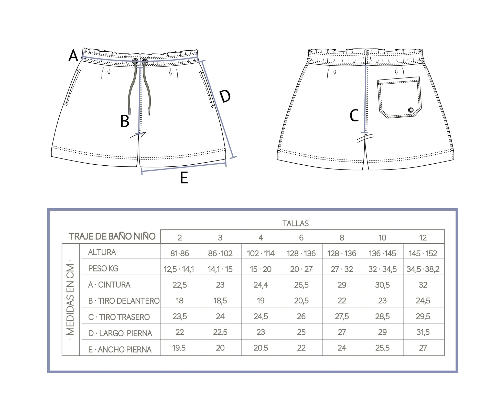 Short de niño con proceso de secado rápido, cordón regulable y bolsillos laterales y trasero.