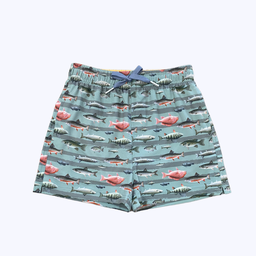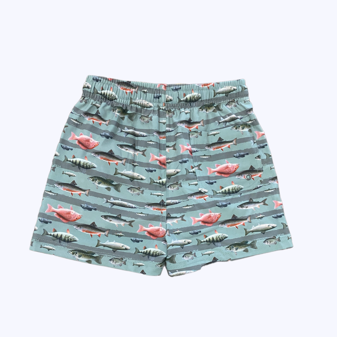 Short de niño con proceso de secado rápido, cordón regulable y bolsillos laterales y trasero.