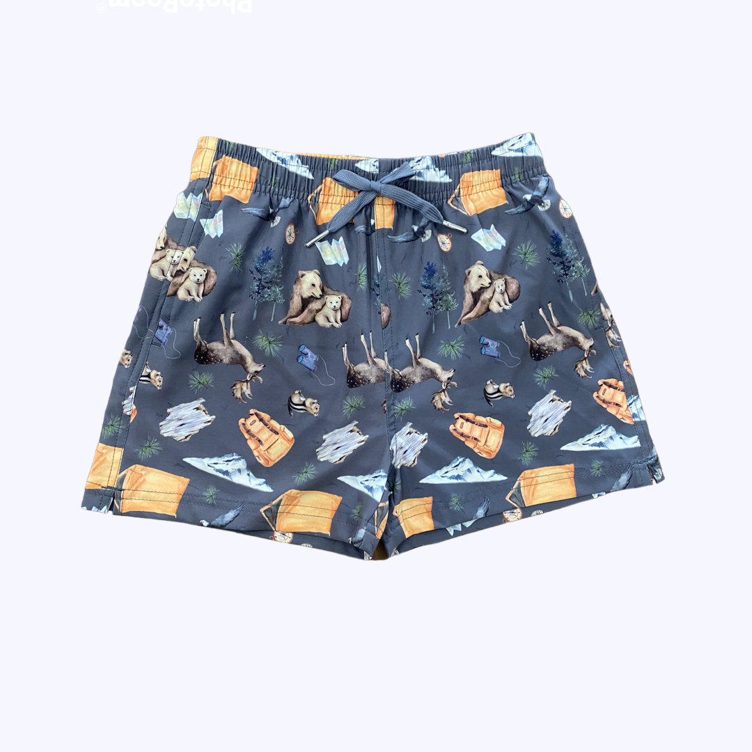Short de niño con proceso de secado rápido, cordón regulable y bolsillos laterales y trasero.